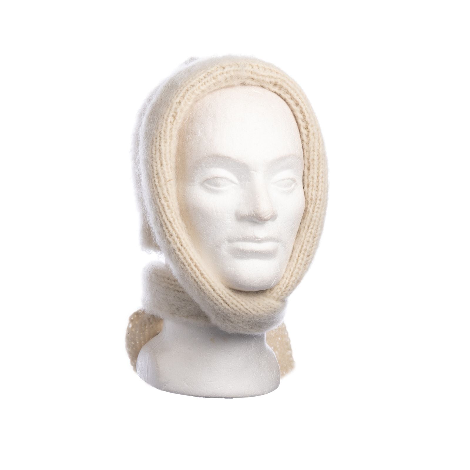 Tämä luonnonvalkoinen Vuokko Haave-huppu on neulottu käsin maailman Myssypääkaupungissa Pöytyällä Myssymummojen puikoissa 100% suomenlampaan villasta ja karstattu ihanan pehmeäksi Pöytyän kirkonkylällä. Tuote on värjäämätöntä villaa.