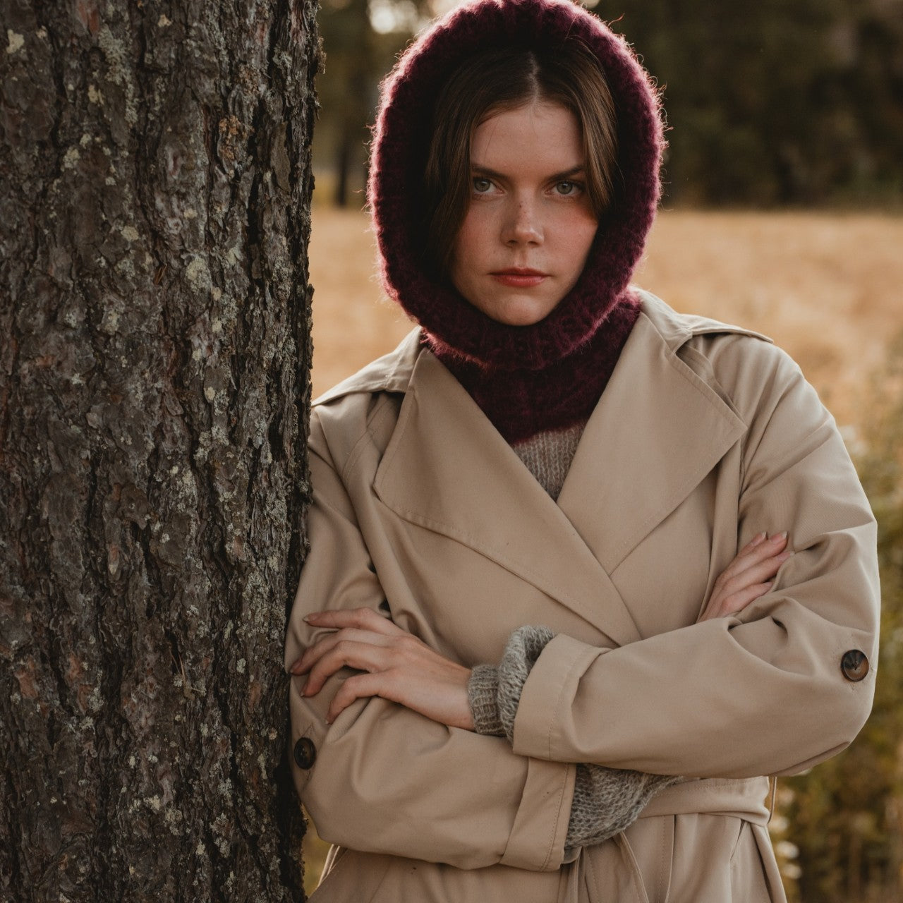 Tämä luumunpunainen Hohto-huppu on neulottu käsin maailman Myssypääkaupungissa Pöytyällä Myssymummojen puikoissa 100% suomenlampaan villasta ja karstattu ihanan pehmeäksi Pöytyän kirkonkylällä. Tuote on käsinvärjätty ja värjäysprosessin vuoksi väreissä saattaa esiintyä pientä eräkohtaista vaihtelua.