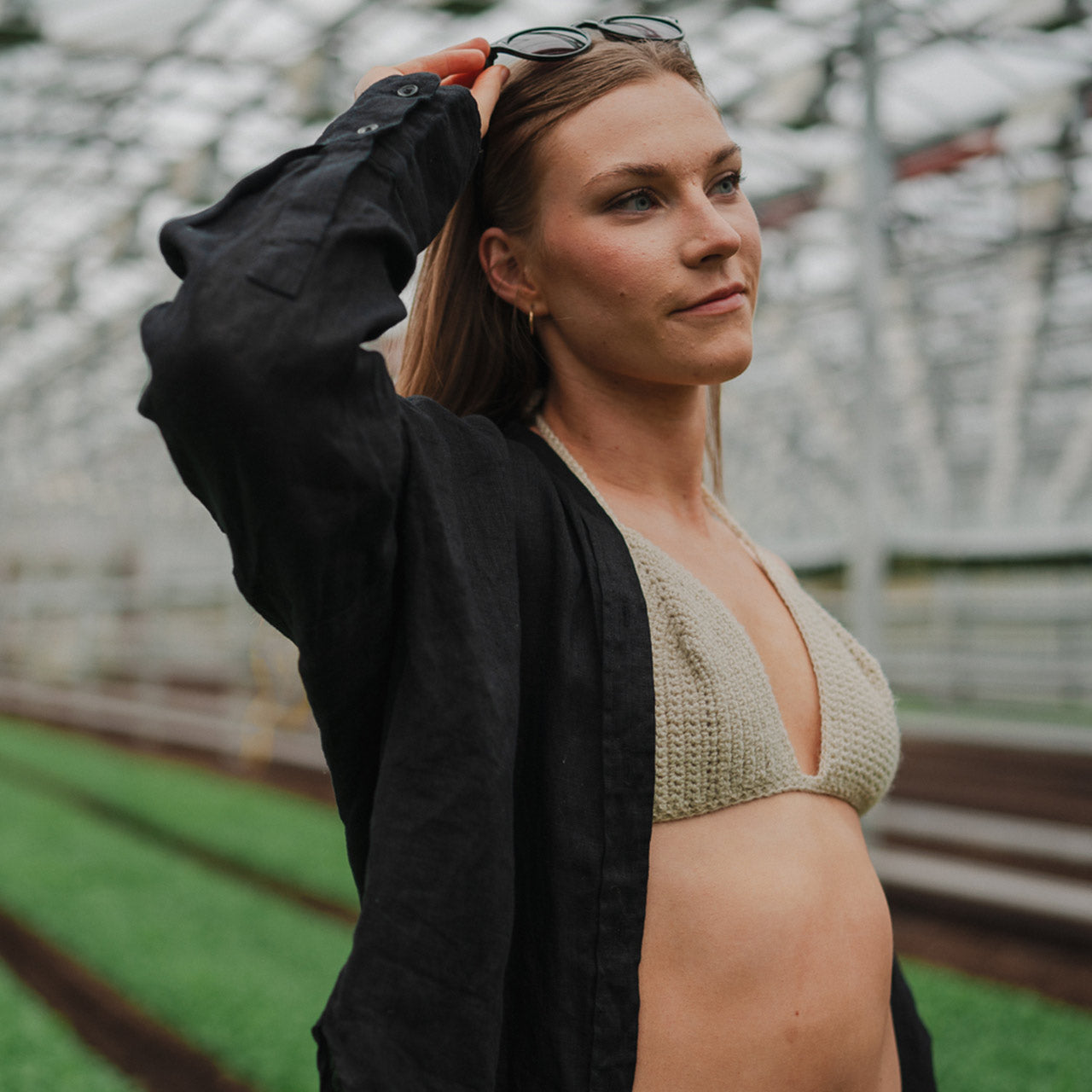 Myssy-bikinit on käsintehty teknisestä materiaalista, joka on yksi parhaista. Nämä luontaisesti vettä hylkivät bikinit pysyvät päällä uidessa, tuntuvat mukavalta päällä myös märkänä ja ovat sovitettavissa useisiin eri vartalotyyppeihin. Muotoon virkatut kupit pitävät hyvin ryhtinsä, materiaali joustaa hieman ja yksikertainen alaosa istuu yllättävän napakasti. 100% villa on erinomainen bikinimateriaali mihin tahansa muuhun luonnonkuituun verrattuna. Dare to wear?