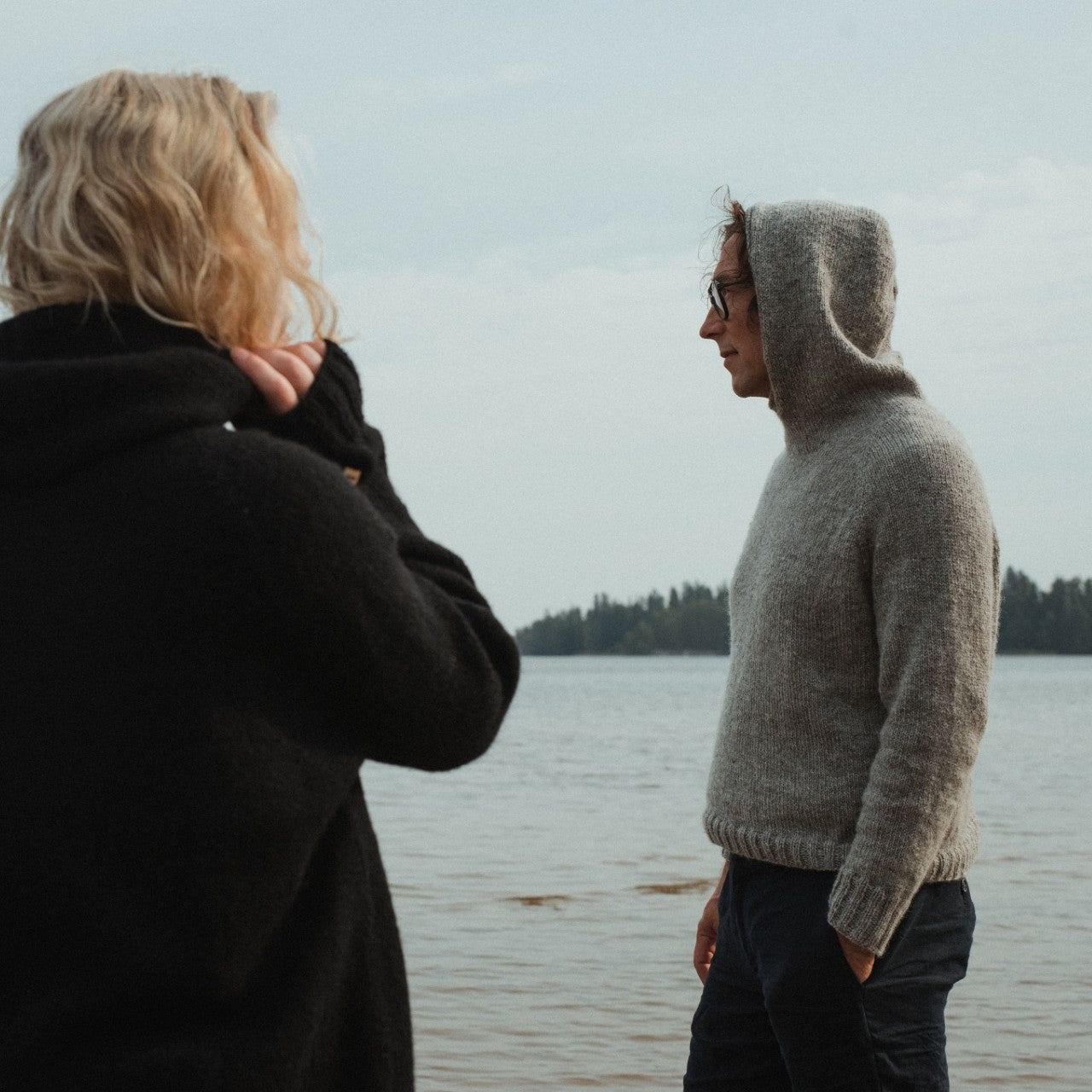 Myssy Hoodie on takuuvarma minimalistinen pöytyäläisneule: Ei kuvioita, ei kiemuroita, ei värejä, ei mitään ylimääräistä. Joskus kun sitä oikein pääsee flow-tilaan, kaikki on helppoa ja täydellistä. Se ei ole viileä muotiuutuus vaan lämmin ja ajaton villapaita.