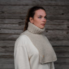 Tämä luonnonvalkoinen Vuokko Myssy-kauluri on neulottu käsin maailman Myssypääkaupungissa Pöytyällä Myssymummojen puikoissa 100% suomenlampaan villasta. Tuote on värjäämätöntä villaa, sävy muodostuu kun kehrätessä sekoitetaan erivärisiä villoja.