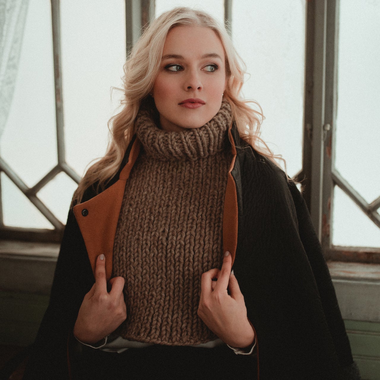 Kyllä, se on lappukauluri. Onhan tätä nyt vähän vaikea selittää. Onneksi ei tarvitse, kun on päivänselvää, että tämä Myssy-kauluri paitsi pitää sinut lämpimänä, kruunaa asun kuin asun.