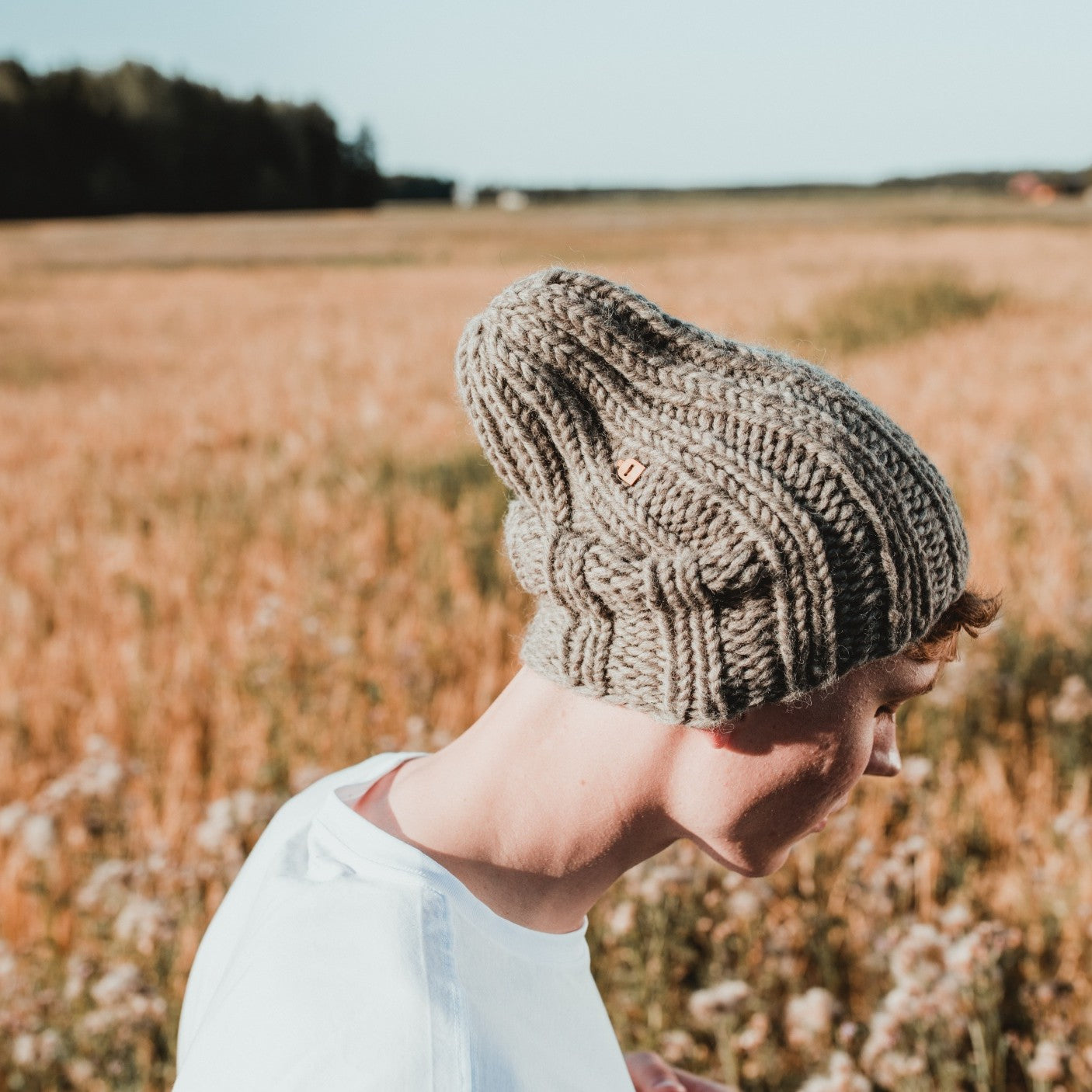 Tämä vaaleanruskea Hiekka Originals Myssy on neulottu käsin maailman Myssypääkaupungissa Pöytyällä Myssymummojen puikoissa 100% suomenlampaan villasta. Tuote on värjäämätöntä villaa, sävy muodostuu kun kehrätessä sekoitetaan erivärisiä villoja. Myssyn kaunis sävy ja elävä pinta muistuttavat meitä ulkosaariston hiekkarannoista.
