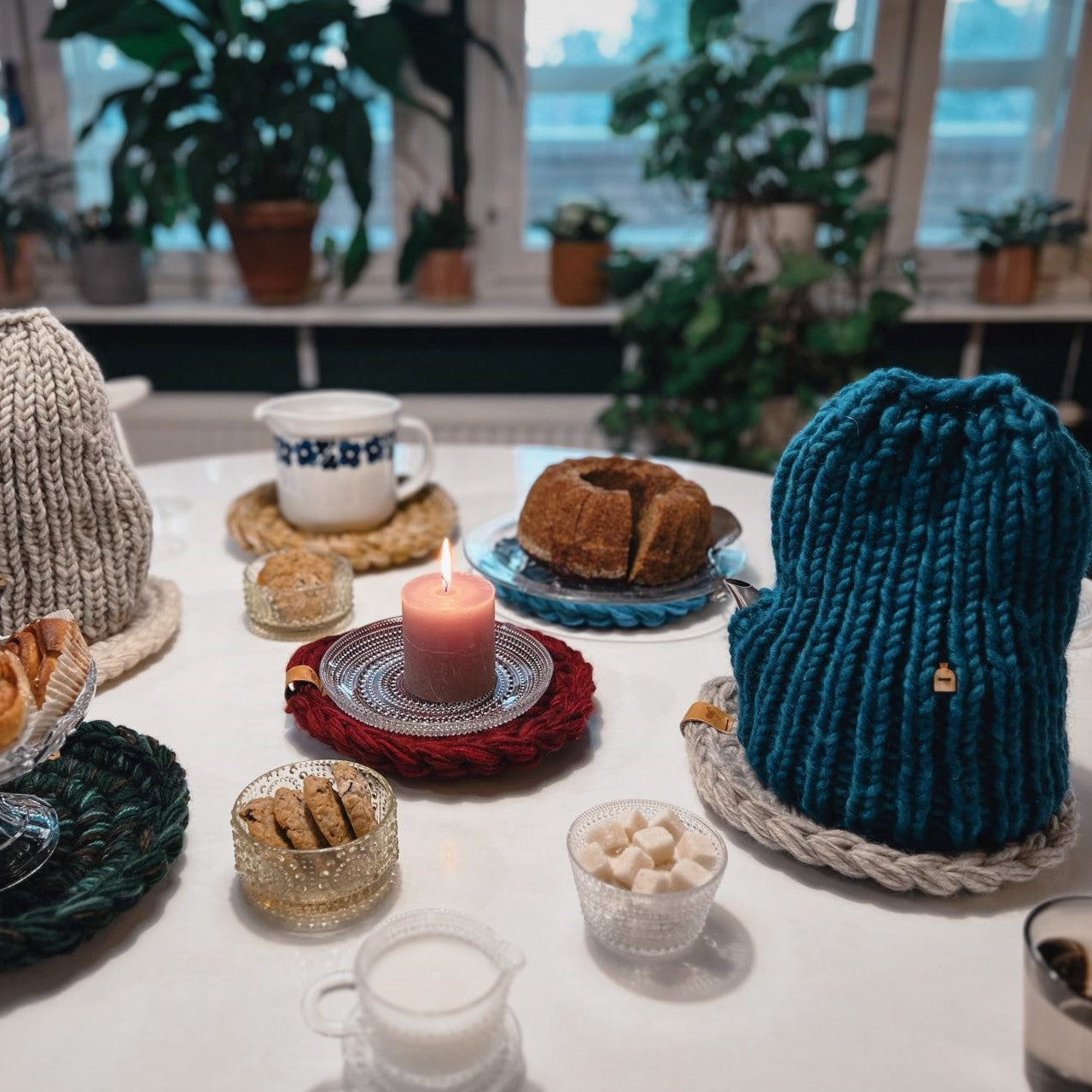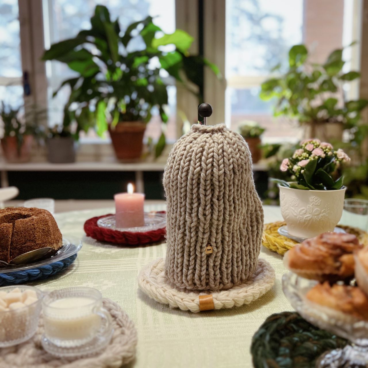 Markkinoiden ainoa ja ensimmäinen Pannu Myssy eli pressopannu-myssy on ollut testikäytössä farmilla vasta 14 vuotta, mutta koska se edelleen pitää paitsi muotonsa myös lämmön loistavasti, on aika kattaa se esille kaikkien Myssy-ystävien saataville. Pressopannun kahvi on ihanan täyteläistä, tämän vuosituhannen pannukahvia. Ja pannusta puheenollen kyllä tämä pannumyssy sopii yhtä pitkällä kokemuksella myös tee- tai kahvipannuun, josta nokka tulee ulos silmukoiden välistä. Sopii litran pressopannuun ja useimpiin teepannuihin.