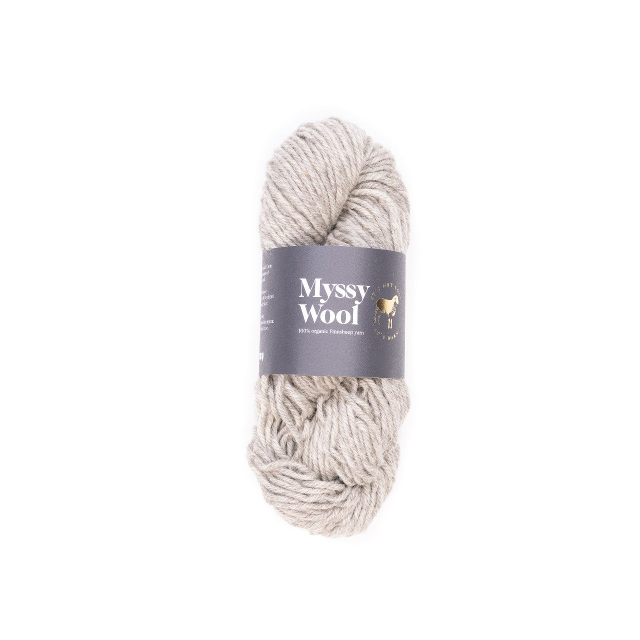 Tämä vaaleanharmaa Jäkälä Viikko-paita on neulottu käsin maailman Myssypääkaupungissa Pöytyällä Myssymummojen puikoissa 100% suomenlampaan villasta. Lanka on värjäämätöntä suomenlampaan villaa, joka on pesty ja kehrätty pieneränä Myssyfarmille. Villan sävy muodostuu, kun kehrätessä sekoitetaan erivärisiä villoja keskenään.