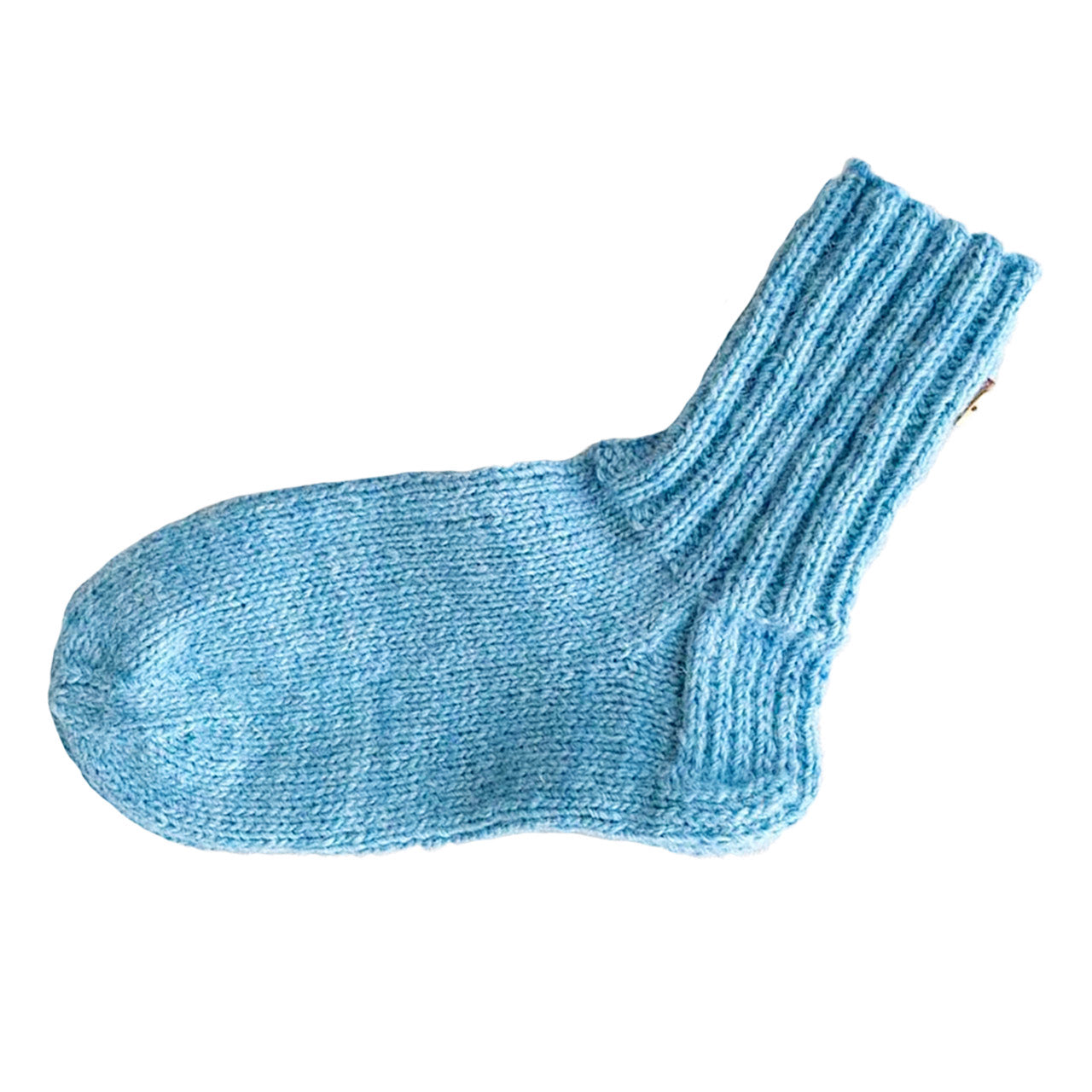Nämä taivaansiniset Myssy-sukat on käsinneulottu paikallisten Myssymummojen puikoissa suomenlampaan villalangasta, johon on sekoitettu myös hieman elastaania kestävyyden takaamiseksi. Lanka on käsinvärjättyä suomenlampaan villaa. Pienerästä johtuen langoissa on toisinaan pientä vaihtelua langan paksuuden suhteen.
