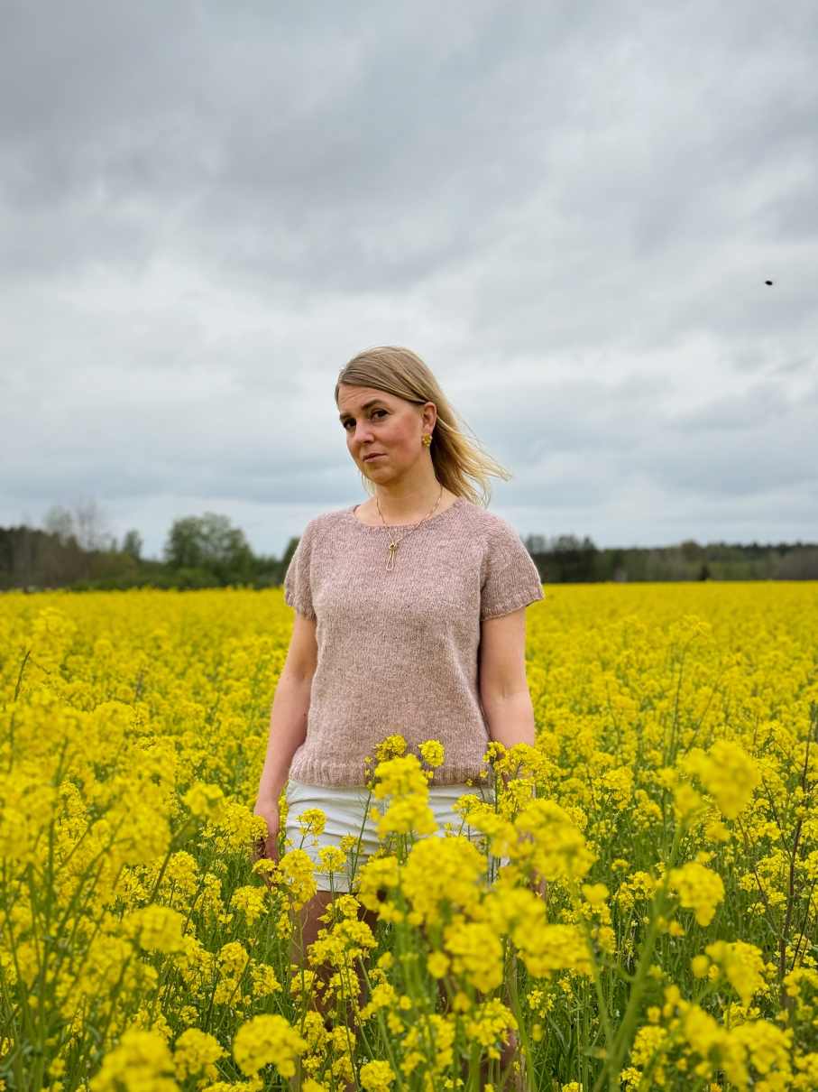 Kepeä kesäneuleemme Myssy Tee on Myssymummojen rakkaudella neuloma seitinohut, superpehmeä ja seesteinen t-paita 100% suomenlampaan villaa. Kaunista!