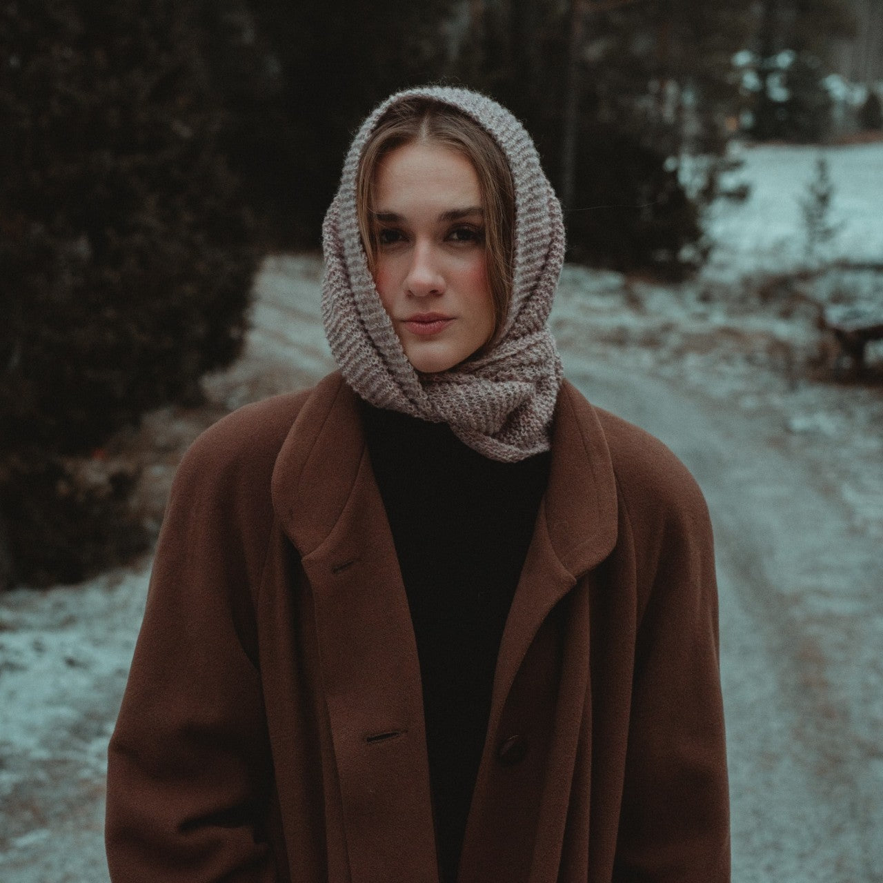 Turuilla ja toreilla ei ole enää vuosiin näkynyt huivipäisiä rouvia. Kiedo itsesi tähän pehmeään villahuiviin ja astu ajassa joko taakse tai eteenpäin. Tulevaisuus tuntuu pehmeältä.