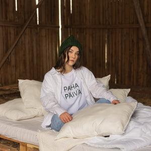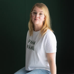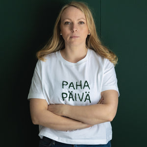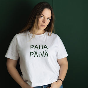 Paha Päivä -paidasta on tehty kaksi eri mallia: unisex-malli sekä cropattu leveämpi naisten malli.