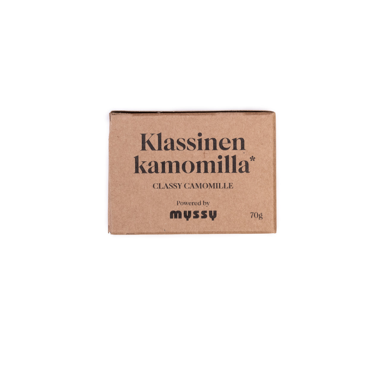 Isontuvan tilan luomukeruualueelta käsin kerätystä kamomillasta ja Myssyöljystä käsityönä valmistettu perinteikäs, mutta vegaaninen ja pesevä palashampoo. Sopii etenkin vaalealle ja hennolle hiuslaaduille - ja parempiinkin piireihin.