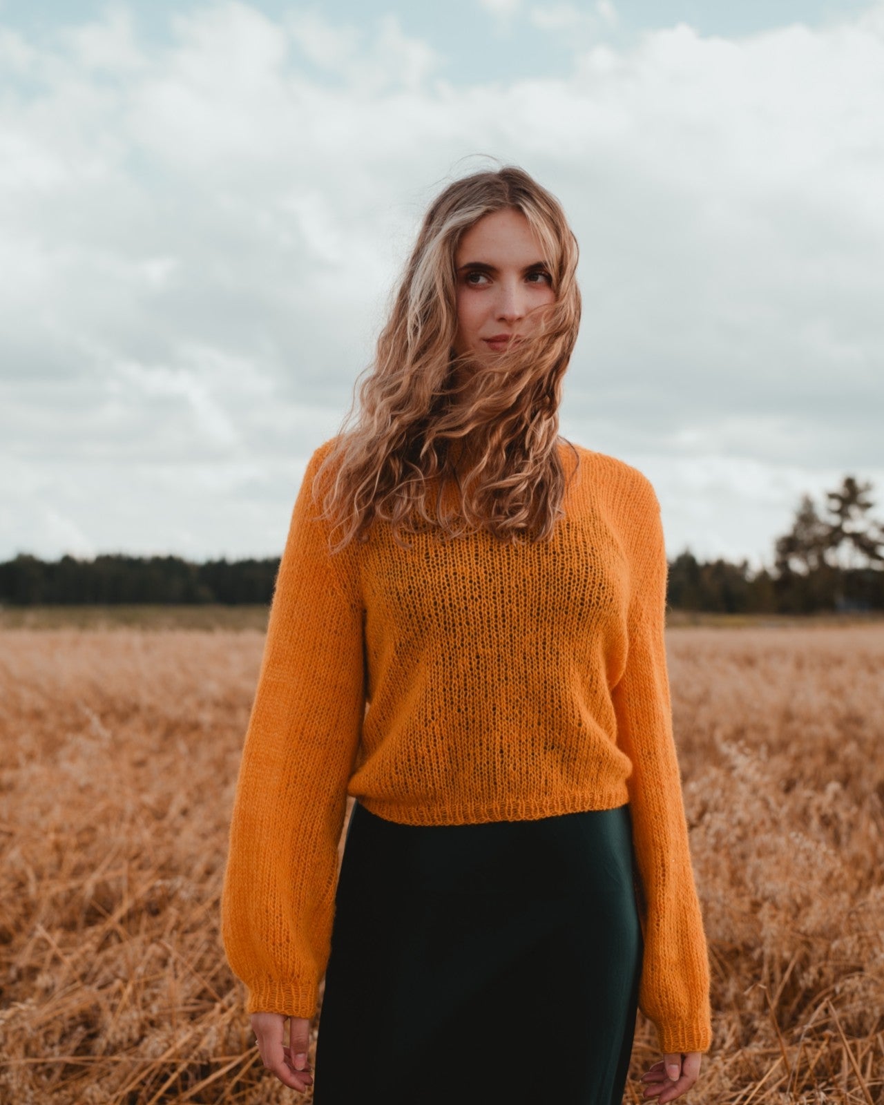 The sweater is meant to be loose. Choose a size with approx. 8-20cm positive ease at bust circumference.