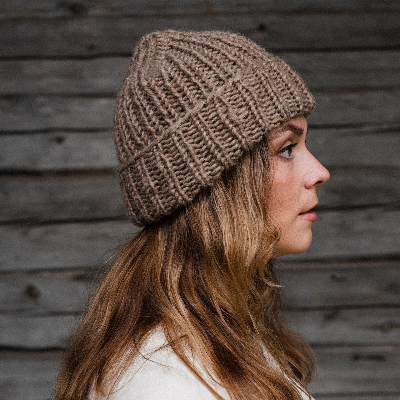 This natural light brown Puhuri beanie is hand-knitted by Myssy Grannies in Pöytyä Finland from 100% Finnsheep wool. The yarn is natural colored.