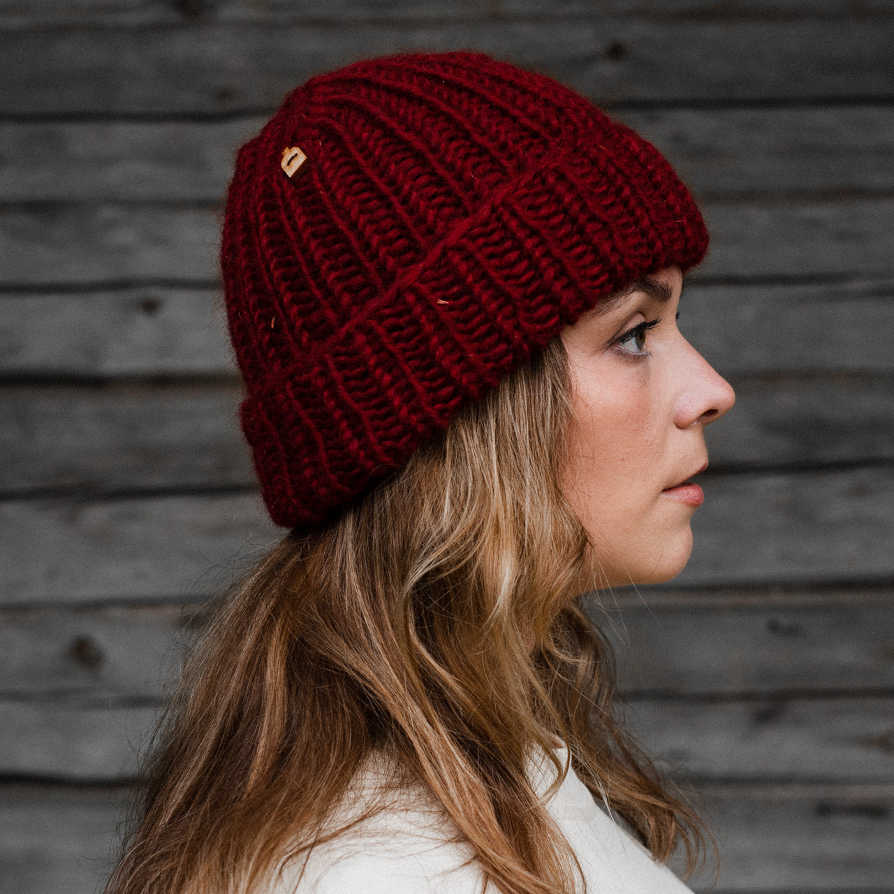 This lingonberry red Puhuri beanie is hand-knitted by Myssy Grannies in Pöytyä Finland from 100% Finnsheep wool. The yarn is hand-dyed and due to the dyeing process there may be a slight variation in the colors.