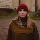 This lingonberry red Pipa beanie is hand-knitted by Myssy Grannies in Pöytyä Finland from 100% Finnsheep wool. The yarn is hand-dyed and due to the dyeing process there may be a slight variation in the colors.