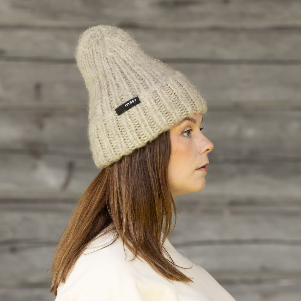 This natural light grey Kyrö Original beanie is hand-knitted by Myssy Grannies in Pöytyä Finland from 100% Finnsheep wool. The color is a natural mix of different colors of wool.