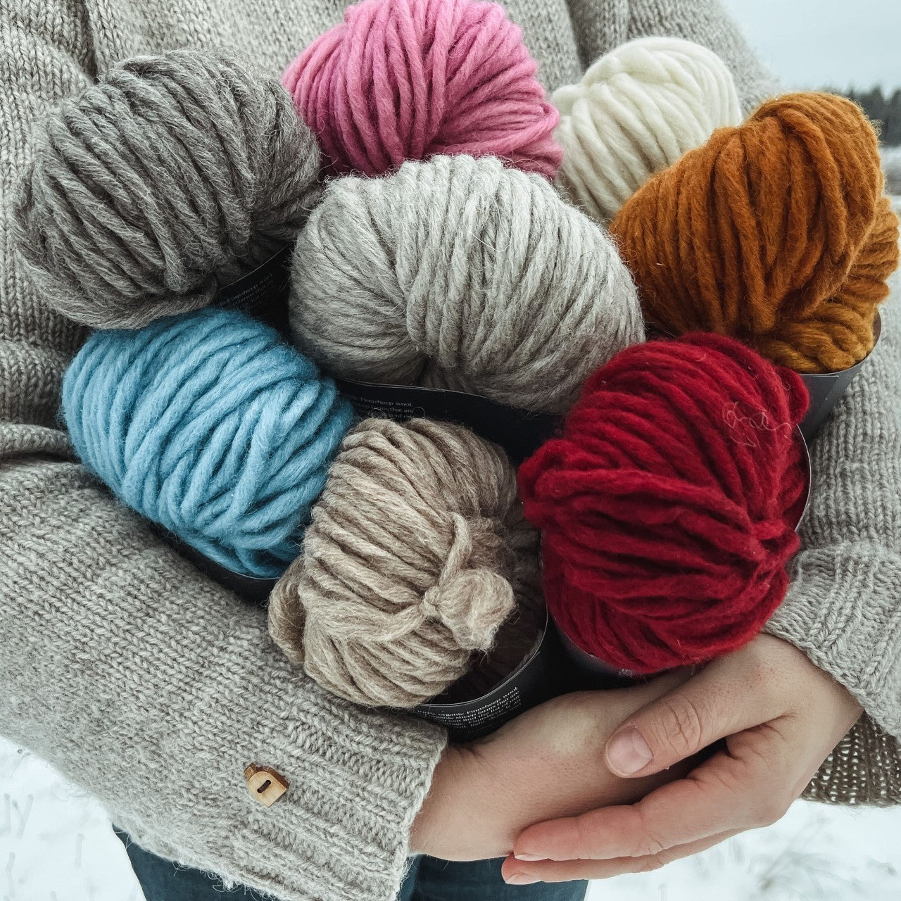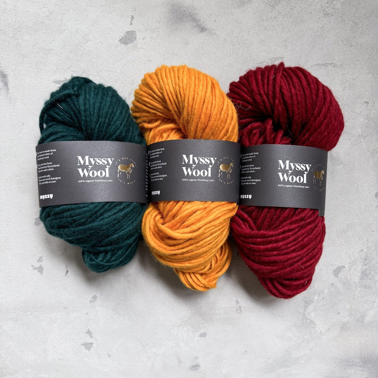The yarn is made of 100% Finnsheep wool, produced in conjunction with our responsible partners. Natural colors are created by carding natural wool colors together and dyed ones are hand-dyed at Myssyfarmi Headquarters.