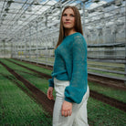 This bottle green Rosmariini Kuohu Sweater is hand-knitted by Myssy Grannies in Pöytyä Finland from 100% Finnsheep wool. The product is hand-dyed and slight variations can be found in the color.