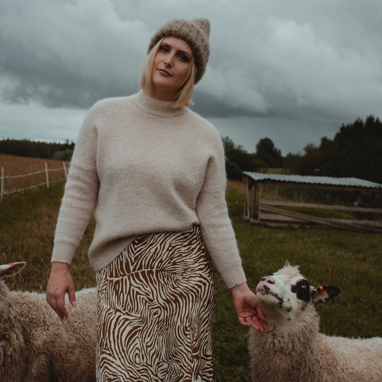 You can freshen up your garment by airing it out. However, if your Myssy product does get dirty or stretches out, it can be carefully hand-washed or machine-washed with a high-quality wool program. The garment should be dried flat and shaped while still wet. This way the product will recover its original appearance. Use special wool detergent.