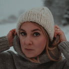 This natural white Tähti Muffi beanie is hand-knitted by Myssy Grannies in Pöytyä Finland from 100% Finnsheep wool. The color is a natural mix of different colors of wool.