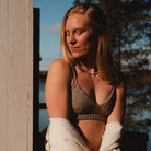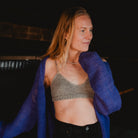 These natural light grey Jäkälä Myssy Bras are hand-knitted in the world's Myssy capital, Pöytyä, by Myssy Grannies using 100% Finnish sheep wool. The bras feature an elastic band inside the bottom edge strap.