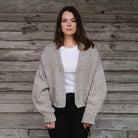 This stone grey Kivi Tähkä Cardigan is hand-knitted in the world's Myssy capital in Pöytyä by Myssy Grannies using 100% Finnish sheep wool. The color is a natural mix of different colors of wool.