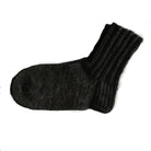 Nämä mustat Myssy Socks -villasukat on käsinneulottu paikallisten Myssymummojen puikoissa suomalaisten lampaiden villalangasta, johon on sekoitettu myös hieman polyamidia kestävyyden takaamiseksi. Pienerästä johtuen langoissa on toisinaan pientä vaihtelua langan paksuuden suhteen.